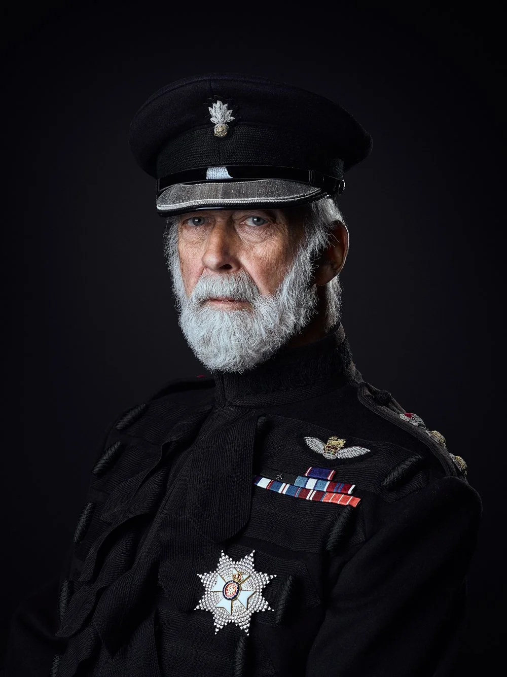 During our second sitting, Prince Michael of Kent wore his Royal Naval Uniform as a Vice Admiral in the Royal Naval Reserve. I chose a profile composition with sharply sculpted lighting, aiming to reflect the dual themes of duty and lineage. The result was a portrait that echoed a classical tradition, while remaining grounded in the present.