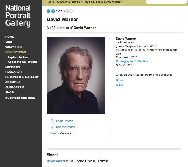 We’re delighted to share that a portrait of acclaimed actor David Warner — known for his roles in Titanic, Time Bandits, and The Omen — captured by Rory Lewis Photographer, has been officially acquired by the National Portrait Gallery, London. Remarkably, this sitting marked David’s first portrait session since being photographed by Cecil Beaton in 1966.