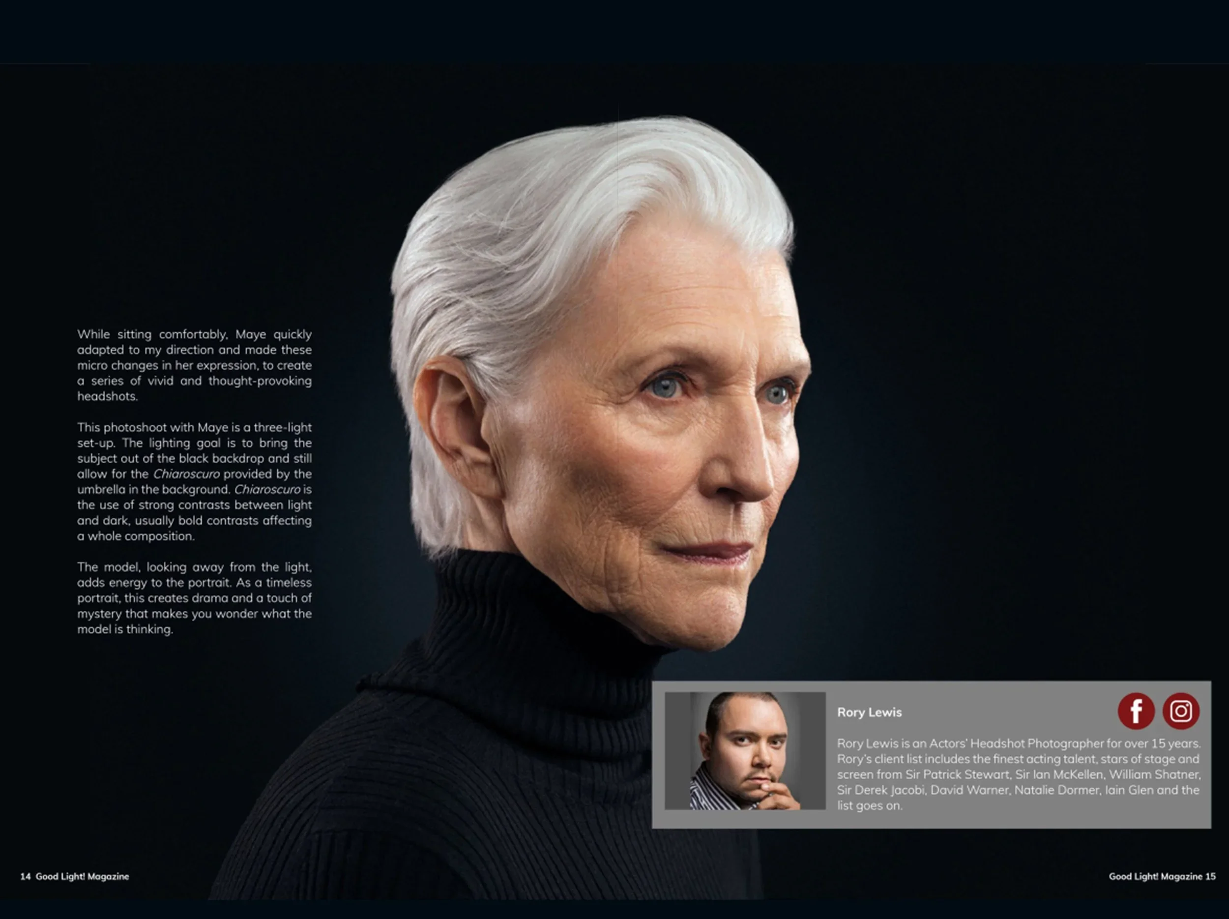 I am honored that my portrait of Maye Musk has been featured on the cover of Good Light Magazine. The session, titled A Timeless Portrait, was conceived as a modern interpretation of classical portraiture—combining restrained elegance, dramatic light, and psychological depth.